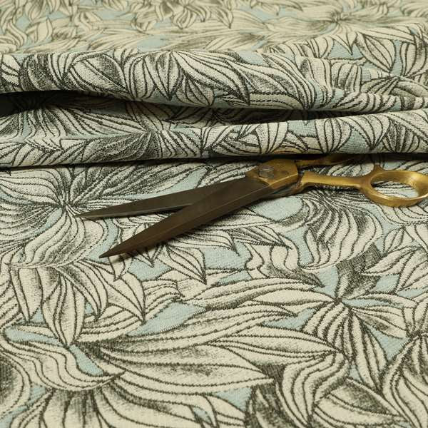 Blue Background With White Leaf Pattern Soft Chenille Upholstery Fabric JO-1321